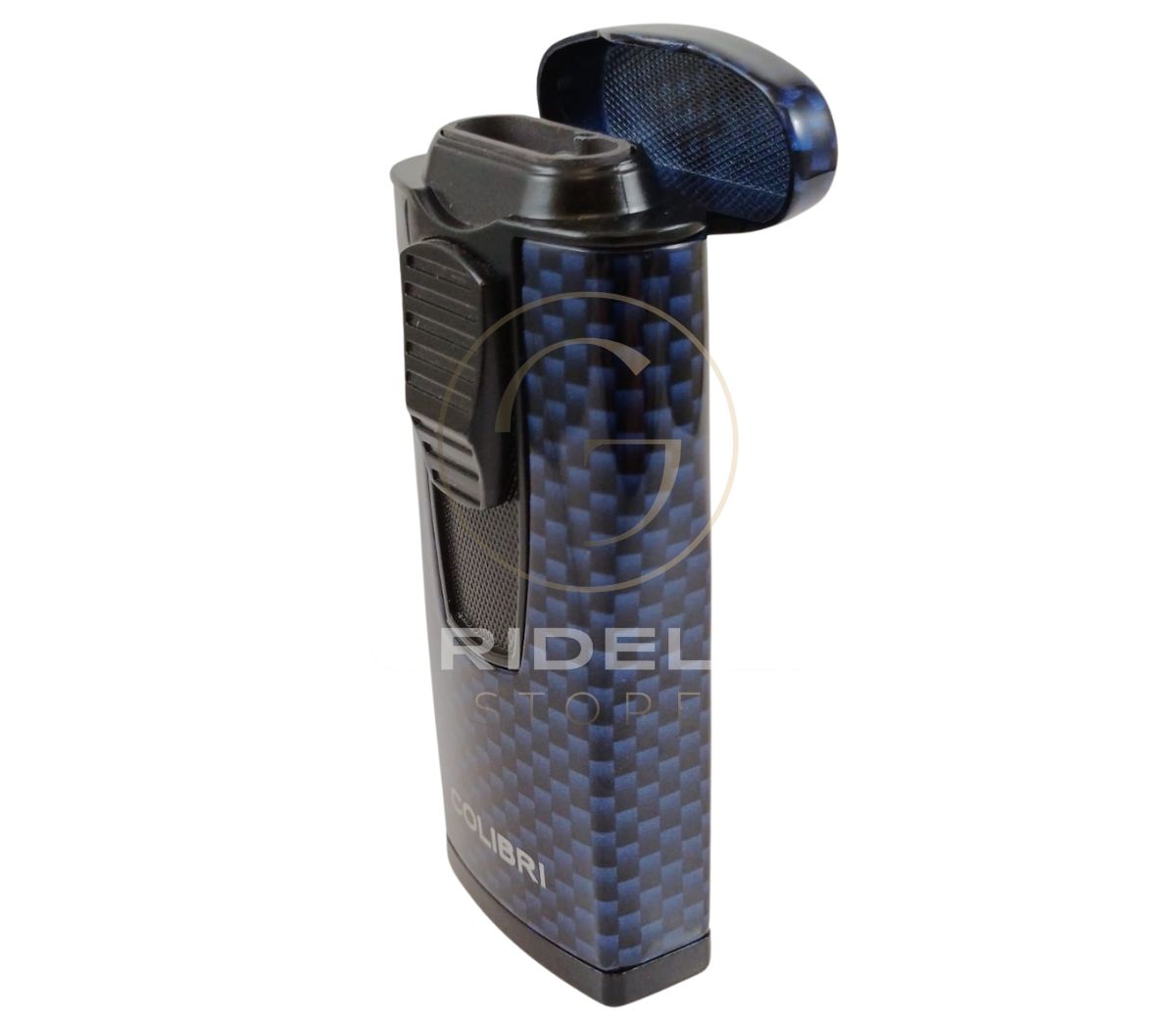 Accendino Lubinski Colibri, jet flame in fibra di carbonio, in due colori (rosso/blu)
